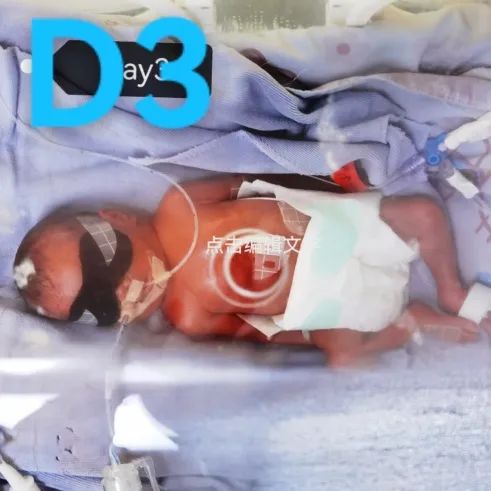 寶寶剛出生時(shí)只有成人的手掌般大小,呼吸微弱、哭聲低,反應(yīng)差,全身皮膚薄得像一層紙、吹彈可破,大腿最粗處也僅有成人的手指般粗細(xì),在娩出的第一時(shí)間內(nèi),我們團(tuán)隊(duì)立即給予保暖、輔助通氣,由新生兒轉(zhuǎn)運(yùn)系統(tǒng)及時(shí)將寶寶轉(zhuǎn)入NICU。