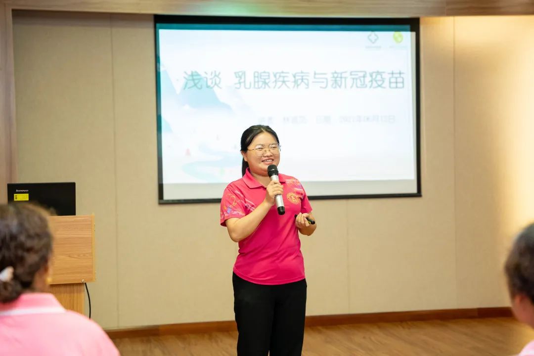 正興醫(yī)院乳腺外科林銀鳳醫(yī)生在此次活動為大家講解了《乳腺疾病與新冠疫苗》,解答了大家關(guān)心的新冠疫苗究竟適不適合乳腺腫瘤患者打、什么時候打等一系列大家關(guān)心的問題。吳秀萍副院長也在活動現(xiàn)場解答了患者咨詢的關(guān)于疫苗接種的相關(guān)疑問。