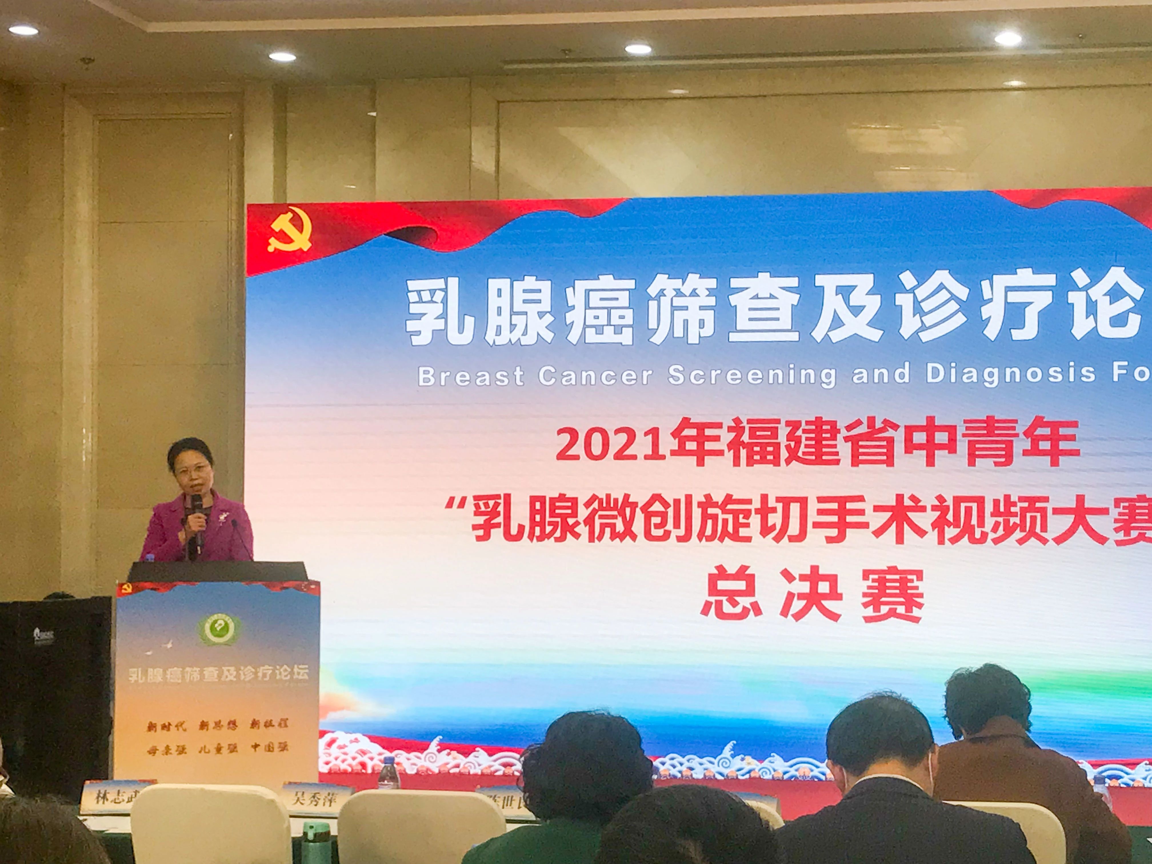 在此大會(huì)上,中國(guó)婦幼保健協(xié)會(huì)乳腺保健專業(yè)委員會(huì)舉辦了“乳腺癌篩查及診療分論壇暨乳腺病診治規(guī)范及新技術(shù)學(xué)習(xí)班”。我院吳秀萍副院長(zhǎng)受邀擔(dān)任2021年福建省中青年“乳腺微創(chuàng)旋切手術(shù)視頻大賽”總決賽點(diǎn)評(píng)嘉賓及評(píng)委,為更好推動(dòng)中青年乳腺外科醫(yī)師診療水平、加強(qiáng)乳腺微創(chuàng)旋切手術(shù)操作的規(guī)范化起到了強(qiáng)有力的推動(dòng)作用。