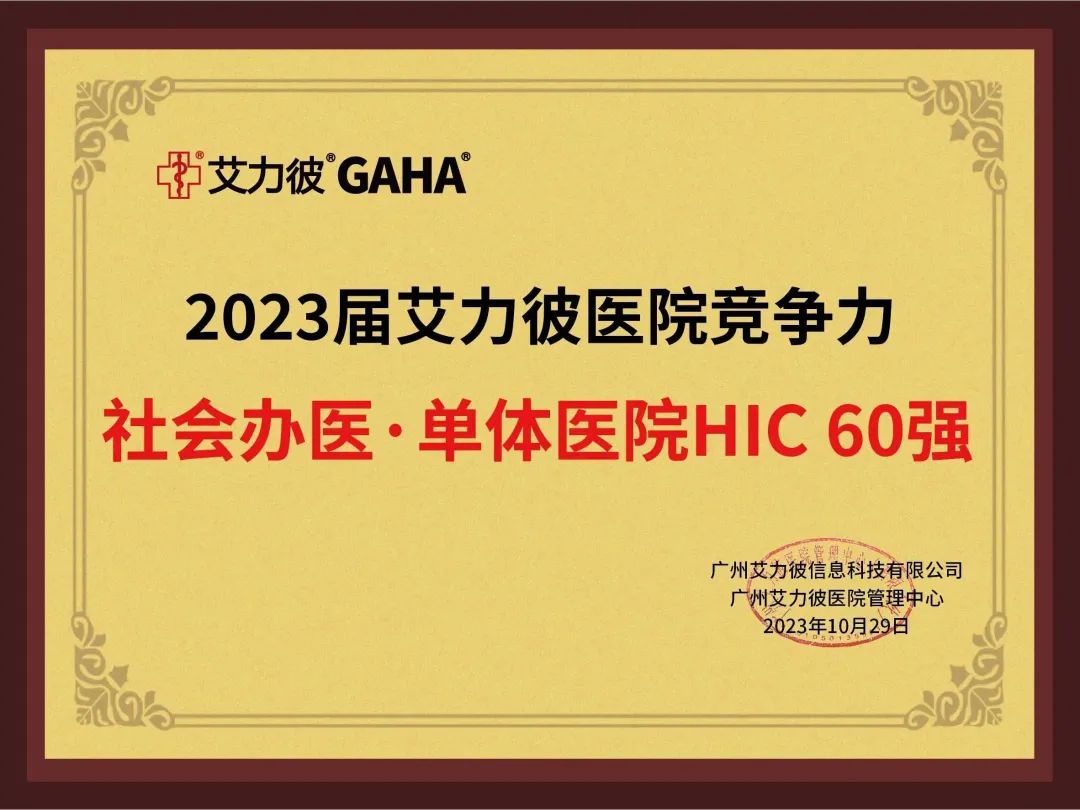 “全國社會辦醫(yī)單體醫(yī)院HIC60強第6位”